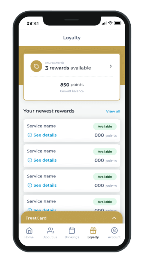 For every treatment, reward points will be credited to your profile. $1 = 1 point.